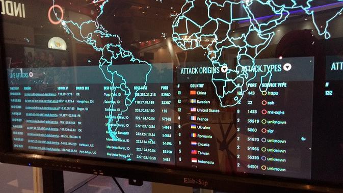 Dari layar yang menampilkan tujuh jenis sensor tersebut, bisa langsung diketahui negara asal hacker, alamat IP, hingga lokasinya.