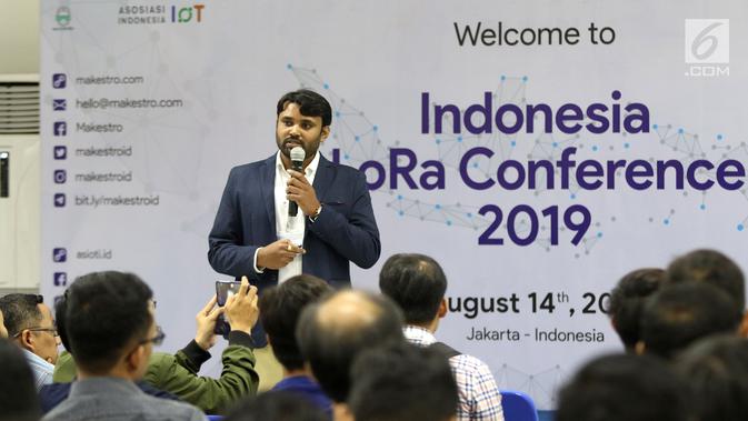 Business Development Manager TUV Grace Yang saat menjadi pembicara dalam Indonesia Long Range Conference (IDLoRaCon) 2019 di Function Hall Emtek City, Jakarta, Rabu (14/8/2019). IDLoRaCon 2019 mempertemukan pegiat teknologi, pelaku industri, dan pengguna teknologi LoRa. (Liputan6.com/HermanZakharia)