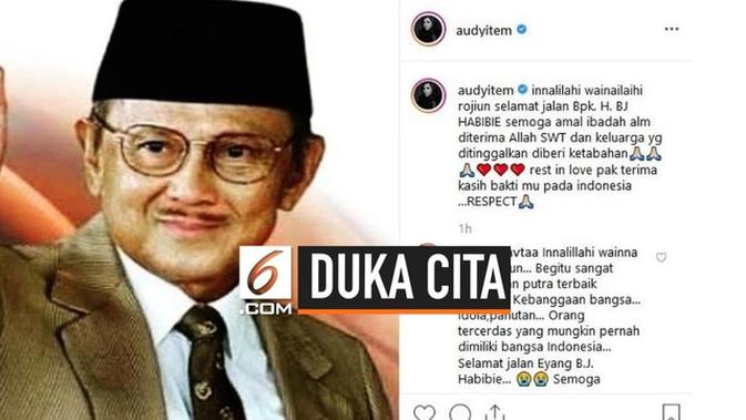 Liputan6.com, Jakarta BJ Habibie menghembuskan nafas terakhirnya dalam usia 83 tahun. Kabar berpulangnya BJ HAbibie mengukir duka mendalam bagi masyarakat Indonesia termasuk para selebritas.