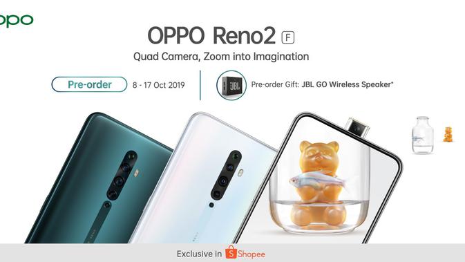 Segera menjadi yang pertama memiliki OPPO Reno2 F melalui pre-order hanya di OPPO Official Store di Shopee. Periode Pre-order mulai 8-17 Oktober 2019. Oh ya, O-Fans juga bisa mendapatkan gratis speaker bluetooth JBL Go 1 senilai Rp299.000.